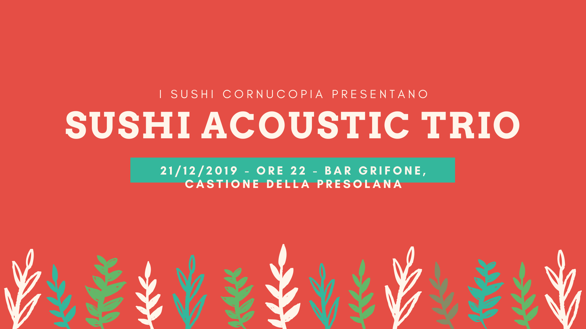 e cerchiamo insieme; dalla potenza di ciò che ci è accaduto, più grande di noi, a volte imprevedibile. È questo lo spirito che ha costruito i Sushi Cornucopia come li vediamo oggi: dai loro esordi in duo alla formazione attuale: un “crescendo per aggregazione” fatto di esperienze comuni, con la musica al centro, condivisa in amicizia. La proposta musicale della serata si basa sul repertorio storico della band orobica, con una scaletta strutturata in tre parti (Inferno, Purgatorio e Paradiso) in un viaggio allegorico tra un rock energico, un lento emozionale, un folk trascinante, il tutto con venature funk e strizzando l’occhio al pop: un lungo percorso, insomma, che parte dal mezzo del cammin di nostra vita e arriva su, fino a toccare l’amor che move il sole e l’altre stelle.